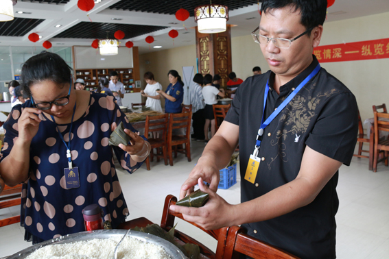 (一)“粽”覽巧手——包粽子大賽 下午三點(diǎn),在人事行政經(jīng)理雷斐的一番精彩講話后,包粽比賽正式開(kāi)始!由公司各部門組成包粽小組紛紛大顯身手,拿出看家絕活,女同事們手法嫻熟把一個(gè)個(gè)粽子包的非常精美,財(cái)務(wù)主管李懷新更是秀了一把好手藝,他包的粽子有棱有角,端端正正,三兩下子一個(gè)飽滿美觀的粽子就完成了!正是鐵漢也有柔情一面!良芯小組的男同事也不甘示弱,邊看邊學(xué),認(rèn)認(rèn)真真地完成了包粽任務(wù)。最后,財(cái)務(wù)部采購(gòu)部小組憑借實(shí)力獲得了本次包粽比賽的冠軍,董事長(zhǎng)助理兼財(cái)務(wù)中心總監(jiān)莫麗軍為冠軍隊(duì)伍頒發(fā)獎(jiǎng)品。