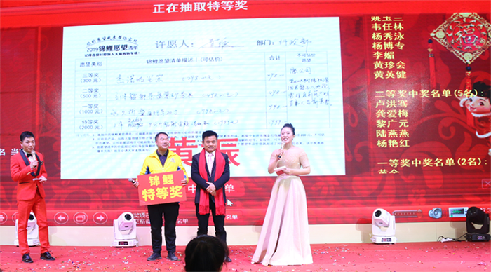 董事長致詞圖片 回顧2018,成績斐然;展望2019,我們信心滿懷!“天道酬勤、商道酬信、人道酬德、業(yè)道酬精”,新的一年,新的時期,縱覽人將堅持以“團結(jié)拼博、誠實守信、勇于擔(dān)當(dāng),做負責(zé)任的人,做最好的線纜”為行為準則,向著更高的目標邁進! 第一篇 激情表彰篇 有人說:一堆沙子是松散的,可是它和水泥、石子、水,混合后,比花崗巖還堅韌!一根麻繩是脆弱的,可是千百根麻繩捆成一股,它比鋼鏈還牢固!一個戰(zhàn)士的力量是有限的,可是千百個戰(zhàn)士團結(jié)在一起,就成為無堅不摧的力量!這就是團隊的力量、團結(jié)就是力量!縱覽人攻必克、戰(zhàn)必勝的力量! 縱覽十五年,正是因為有著這樣一批勤勤懇懇、默默付出、堅守產(chǎn)品品質(zhì)、悍衛(wèi)企業(yè)榮譽的優(yōu)秀縱覽人,才有了縱覽的今日輝煌! 2018年度質(zhì)量標兵獎圖片 【頒獎詞】品質(zhì)是企業(yè)的明鏡,透視著企業(yè)發(fā)展中每一步的艱苦跋涉;在縱覽人心中:品質(zhì)是責(zé)任、品質(zhì)是榮譽!質(zhì)量標兵們,用精益求精沉淀出卓越品質(zhì)!用卓越品質(zhì)鍛造出質(zhì)量的靈魂! 2018年度優(yōu)秀員工獎圖片 【頒獎詞】偉大出于平凡,平凡蘊涵精彩!謝謝你們?yōu)榭v覽的辛勤付出!我們將以你們?yōu)榘駱?,在工作崗位上兢兢業(yè)業(yè)、發(fā)揮主人翁精神,為我們共同美好的明天而繼續(xù)奮斗! 2018年度忠誠骨干員工獎圖片(5年以上) 【頒獎詞】藍天的廣闊,是白云的堅守;大地的博大,是綠草的堅守;奇跡的出現(xiàn),是堅持的堅守;縱覽的發(fā)展,是因為有你們的堅守!感謝你們的忠心護主、辛勤付出!你們就是縱覽的楷模!縱覽的驕傲! 2018年度業(yè)績突出貢獻獎圖片 【頒獎詞】2018年,縱覽業(yè)績再次實現(xiàn)逆勢大增長,而這增長的背后,是有一個敢戰(zhàn)、能戰(zhàn)、善戰(zhàn)的鷹之團隊,他們不畏環(huán)境險惡,飛得高、望得遠,發(fā)現(xiàn)目標就頑強地追尋!他們不斷自我加壓、堅持突破,用出色的業(yè)績詮釋了什么是真正的王者之師! 凝聚產(chǎn)生力量、團結(jié)誕生希望!縱覽的每一個成就,都凝聚著全體縱覽人的辛勞和汗水,光榮屬于我們縱覽人! 第二篇 精彩競演篇 方隊展示拉開競演大幕,這個環(huán)節(jié)拼的是團隊精神,你看,誰,也不服誰呢! 氣勢磅薄的方隊精彩亮相,展現(xiàn)了縱覽團隊的氣勢、創(chuàng)意和不掉隊、不服輸團隊精神! 才藝競演環(huán)節(jié)有你絕對想不到的精彩:縱覽人就是這樣,:工作中是精英,舞臺上是明星!團隊有著迷一樣的自信! 開場舞《相伴-同行》表演者:中層管理人員 合唱《達產(chǎn)達標不是夢》表演者:生產(chǎn)部+廣東公司聯(lián)隊 舞蹈《縱覽工人有力量》表演者:質(zhì)量部+工藝部+設(shè)備部+總工辦聯(lián)隊 小品《一路有你》表演者:采購部+財務(wù)部聯(lián)隊 復(fù)古舞臺劇《歌舞青春》表演者:商務(wù)部+倉儲部聯(lián)隊 情景舞蹈《幸福縱覽人》表演者:人力資源部+行政部聯(lián)隊 詩朗誦《我自豪,我是縱覽人》表演者:大客戶部+市場部+技術(shù)服務(wù)部聯(lián)隊 舞蹈《隔壁泰山》表演者:質(zhì)量部 現(xiàn)場氣氛嗨爆!精彩的不要不要的,你看了,是否有心動,有想加入的沖動呢?! 第三篇 感恩家人篇 作為縱覽人,我們是自豪的!作為縱覽人,我們更是感恩的,在縱覽成長的過程中,我們不會忘記,一路幫扶著我們的朋友和家人;更不會忘記,一批批曾為縱覽發(fā)展付出直至退休的縱覽人! 公司向歷屆在縱覽退休的員工代表送上慰問金 才藝秀 演唱《Demons》+書法秀 表演者:縱覽家人 陳思凱 古箏演奏《女人花》表演者:縱覽家人 黃欽湘 情境舞蹈《大王叫我來巡山》表演者:縱覽家人 梁世軒等小朋友 演唱《敢問路在何方》表演者:縱覽集團高管團隊 第四篇 歡樂不停篇 特別的中獎方式:你的愿望我買單!縱覽助你實現(xiàn)2019你的錦鯉愿望!興奮嗎?。?! 中獎人要和主持人對上暗號才能領(lǐng)獎!看到了嗎,答案就在他背面的大屏上! 幸好這些理念縱覽伙伴們早已熟爛于心了,回答的溜溜的! 年會財神爺扮演者居然被抽中了錦鯉特等獎,天意?。?o:p> 看到了嗎?大屏上愿望單就是他親筆寫下的愿望---當(dāng)然,縱覽助你實現(xiàn)! 不夠不夠,縱覽十五周年,表演抽獎都結(jié)束了,還要再加個送幸運錦鯉福袋,按抽中的桌爆獎!被抽中的桌每個人都會得到福袋哦,你興奮嗎! 第五篇 祝福篇 讓我們共同舉杯,為2019縱覽更加輝煌燦爛,取得更好的業(yè)績,干杯---! 過去的成績,是縱覽人十四年如一日,堅持不懈爭做最好的成果;是縱覽人用信用、責(zé)任與擔(dān)當(dāng)換來的成果;這成果來之不易,我們縱覽人要努力保護并不斷擴大這個成果,讓這個成果成為推動縱覽高質(zhì)量發(fā)展的源動力。 2019年,縱覽人將肩負著更大的責(zé)任和使命,我們將以昂揚的斗志,踏上新夢想與新征程。讓我們緊緊圍繞著集團公司的經(jīng)營發(fā)展目標,團結(jié)一心、攜手共進,譜寫縱覽美好的新篇章! 祝福縱覽、祝??v覽人!