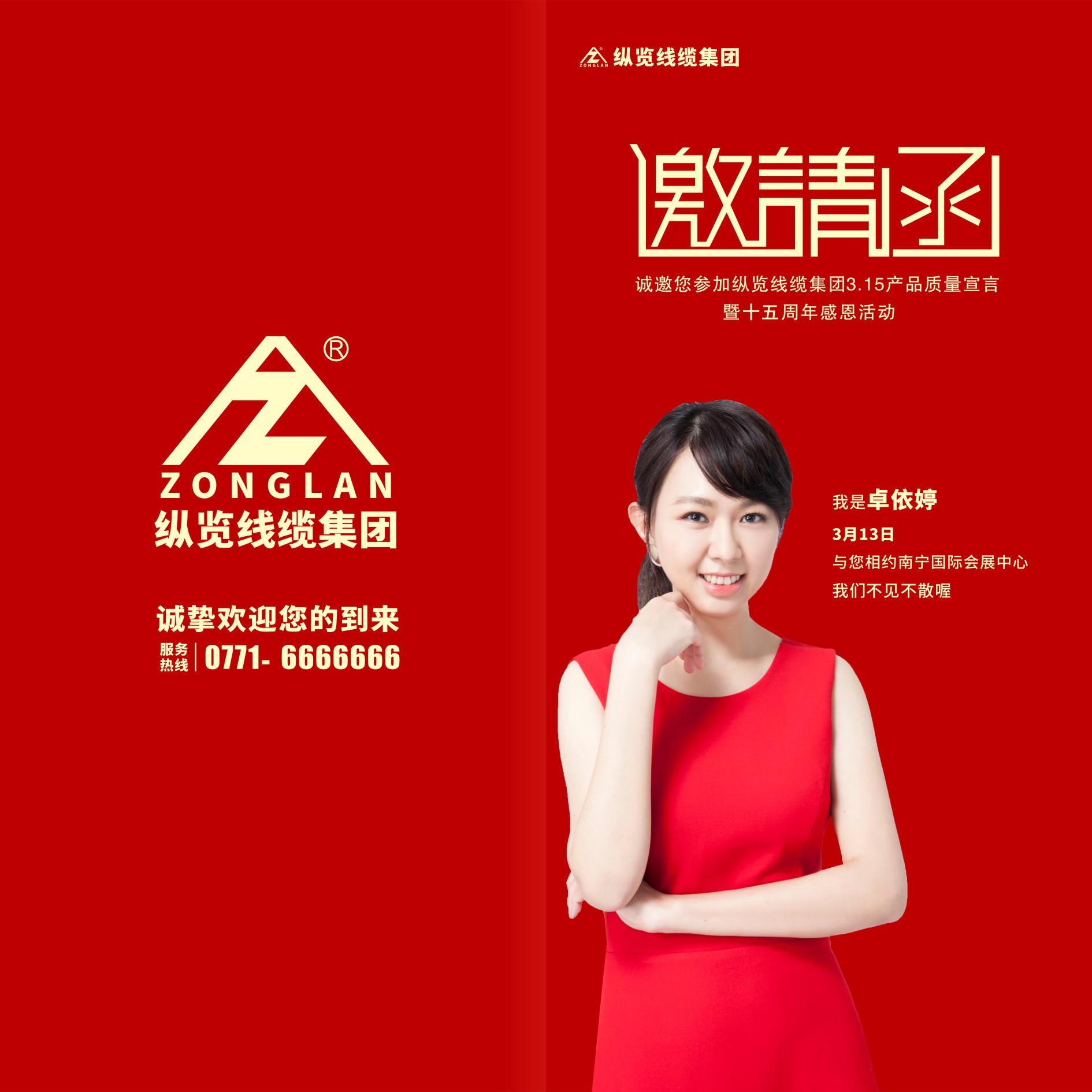 而今天,很高興地告訴7080們 你們的愛豆本月即將空降南寧 再不瘋狂,我們都要老了~ 2019年3月13日,卓依婷將參加廣西縱覽線纜集團(tuán)3.15產(chǎn)品質(zhì)量宣言暨15周年感恩活動晚會演出。