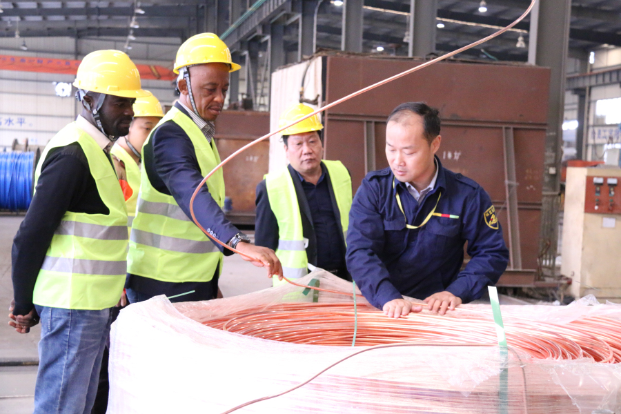 2016年11月26日,非洲剛果金國家電網(wǎng)總經(jīng)理丹尼斯一行不遠萬里蒞臨廣西縱覽線纜集團有限公司參觀考察。 在劉總工程師等領(lǐng)導(dǎo)的陪同下,宏銳公司銷售總監(jiān)魯玉成和非洲剛果金國家電網(wǎng)總經(jīng)理丹尼斯參觀了我公司的生產(chǎn)車間。劉總工程師詳細(xì)介紹了我公司生產(chǎn)的線纜產(chǎn)品特性與亮點。丹尼斯在切身體會了我公司的生產(chǎn)情況和產(chǎn)品之后,對公司的技術(shù)實力及規(guī)模表示贊賞,并且詳細(xì)的詢問了線纜的生產(chǎn)技術(shù)和銷售情況。他表示,此次訪問不僅有助于剛果金學(xué)習(xí)借鑒中國的經(jīng)驗,還將有力促進縱覽與剛果金的友好交流合作。最后,丹尼斯與縱覽線纜集團的員工進行了親切合影,還表達了并進一步建立合作關(guān)系的意愿,希望能與縱覽集團進行深入的交流與合作。 |