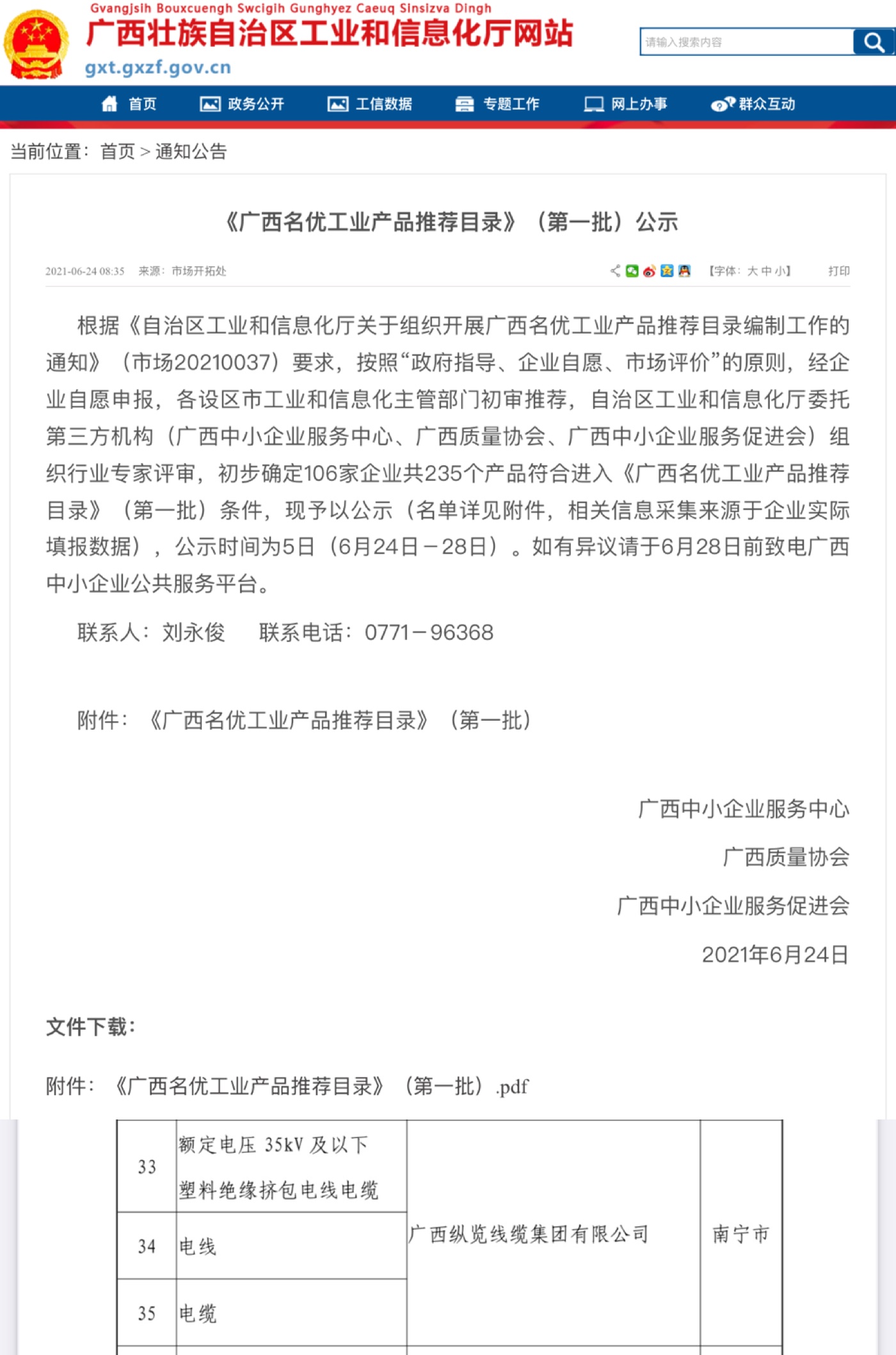 日前,在廣西工業(yè)和信息化廳公示的第一批次的《廣西名優(yōu)工業(yè)產(chǎn)品推薦目錄》企業(yè)產(chǎn)品名單中,廣西縱覽線纜集團(tuán)全系列產(chǎn)品以廣西線纜行業(yè)企業(yè)前列的成績上榜。 廣西工信廳組織編制《廣西名優(yōu)工業(yè)產(chǎn)品推薦目錄》工作,評選一批廣西優(yōu)質(zhì)工業(yè)產(chǎn)品,是貫徹落實(shí)全區(qū)工業(yè)振興大會精神及二季度推進(jìn)工業(yè)振興措施工作要求,幫助廣西工業(yè)企業(yè)進(jìn)一步提高產(chǎn)品競爭力和企業(yè)綜合實(shí)力,提振廣西工業(yè)品牌的一項(xiàng)重要工作舉措。入圍企業(yè)代表著廣西工業(yè)各行業(yè)的標(biāo)桿水平。 |