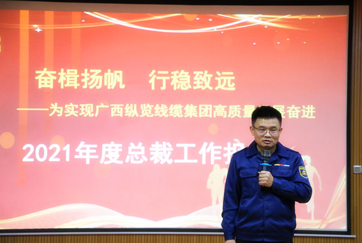 2022年1月16日,縱覽線纜集團2021年度中高層管理人員年終述職報告會在集團多功能廳舉行,出席本次會議的領導有:集團董事長陳秀銳、集團監(jiān)事會主席林曉敏、集團副董事長徐洪虎、總工程師劉小祥、董事長助理兼審計監(jiān)察部經(jīng)理張彩菊、董事長助理兼財務總監(jiān)陳楊、人力行政中心總監(jiān)吳培軍、市場總監(jiān)韋艷秋、大客戶部總監(jiān)李翠仙、工廠中心副總監(jiān)兼生產(chǎn)部經(jīng)理黎永豪等集團各職能中心、部門中層管理者及骨干管理者共計90多位精英參加會議。 會上,各中心、各部門負責人結合本中心、本部門工作職能職責就年度工作任務、業(yè)績指標、重點亮點等工作開展和完成情況逐一地向大會作了報告,對工作中存在的不足和問題進行了分析檢討,就新的一年重點工作規(guī)劃作了講解。 在各中心、各部門負責人述職結束后,陳秀銳董事長作了“奮楫揚帆,行穩(wěn)致遠——為實現(xiàn)廣西縱覽線纜集團高質量發(fā)展奮進”年度工作報告,總結分析了公司2021年工作開展情況,對2022年工作進作了部署。他指出,2021年,是“十四五”開局之年,也是縱覽發(fā)展中不平凡的一年,今天我們在這里共同分析總結2021年度公司經(jīng)營管理工作,部署落實2022年各項任務目標,動員公司上下認清形勢、明確目標、落實責任,以更加昂揚的斗志,更加堅定的信心,更加有力的措施,全力以赴做好2022年各項工作。一要認清形勢,總結成績,正視不足,堅定完成2022年度目標的信心。2021年,受全球“經(jīng)濟寒潮”和“疫情長尾化”的影響,國內(nèi)外經(jīng)濟形勢依然處于低迷狀態(tài),全球能源物資極度緊張,國內(nèi)多地電力供應緊張,電線電纜制造行業(yè)受銅、鋁等主要原材料價格飛漲等因素影響,更是雪上加霜,電網(wǎng)已簽訂的合同交貨即面臨著虧本,公司業(yè)務經(jīng)營受到嚴重影響,企業(yè)經(jīng)營和生存面臨著嚴峻的挑戰(zhàn)。面對危局,縱覽人沒有退路,唯有秣馬厲兵、自強不息、在磨難中成長,在危機中奮起,在變局中擔當。二要圍繞目標,全面部署2022年度公司任務目標和重點工作。2022年是“十四五”規(guī)劃執(zhí)行的第二年,國家經(jīng)濟發(fā)展面臨著需求收縮、供給沖擊、預期轉弱三重壓力,疫情對經(jīng)濟影響逐漸長尾化,供應鏈的穩(wěn)定性面臨沖擊,產(chǎn)業(yè)供應效率還沒有完全恢復。企業(yè)的經(jīng)營發(fā)展仍面臨著極大壓力與挑戰(zhàn),電線電纜行業(yè)“強者恒強、弱者更弱”的勢頭有所顯現(xiàn),行業(yè)龍頭企業(yè)將脫穎而出,競爭白熱化的現(xiàn)實不可回避。我們要善于在競爭中尋找機會和希望、在挑戰(zhàn)中創(chuàng)造奇跡,是縱覽人的使命和責任。希望全體縱覽人在逆境中堅定信心、認真抓好2022年度公司任務目標和重點工作的落實,團結一致,奮勇前行,做出好成績。三要面對新形勢,圍繞新目標,全體縱覽人須上下同心、奮楫揚帆、行穩(wěn)致遠,為縱覽的加快發(fā)展形成強大合力。“做好產(chǎn)品回報客戶、做好企業(yè)回報社會”、 “做最好的線纜”,是縱覽人的使命和愿景。新形勢下,要實現(xiàn)這個目標,全體縱覽人要奮楫揚帆、自強自立、迎難而上。管理團隊要加快提升和加強磨煉,提升責任擔當意識和經(jīng)營管理水平,推動全員同心、為縱覽的實現(xiàn)更快更好的發(fā)展形成強大的合力。 陳秀銳董事長向各級領導干部強調(diào),一是進一步轉變工作作風,強化管理責任,管理工作務實不務虛;二是進一步強化目標意識,在提高管理的執(zhí)行力上下功夫;三是加快做好培訓和人才培養(yǎng)工作,鼓勵優(yōu)秀員工和管理者到一線部門去輪崗鍛煉,培養(yǎng)一批適合公司發(fā)展需要的復合型管理人才;四是堅持文化傳承、倡導正知正念、知行合一,提升團隊的凝聚力和戰(zhàn)斗力,形成公司發(fā)展的合力。 明者因時而變,知者隨事而制,強者乘勢而上。2022年,困難和機遇并存,壓力和信心同在。經(jīng)歷了十八年風雨洗禮的縱覽人,將堅持“做最好的線纜”、“做好產(chǎn)品回報客戶,做好企業(yè)回報社會”,以信念為“舵”,能力為“槳”,上下齊心、堅定目標、振奮精神,凝聚起強大的奮進力量,釋放出高質量發(fā)展的“新活力,”筑實縱覽人2022年的奮進之路! 在報告最后,陳秀銳董事長分別與工廠中心、銷售中心兩大部門分管領導簽訂了2022年度經(jīng)營目標責任狀。 |