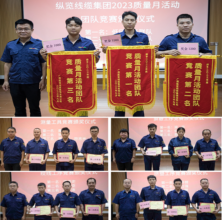 10月14日,縱覽線纜集團“2023年度質(zhì)量月”活動總結(jié)暨表彰頒獎儀式在公司多媒體廳舉行。董事長陳秀銳出席并講話,“質(zhì)量月”活動總指揮劉小祥就“質(zhì)量月”活動各項工作開展情況作了總結(jié)發(fā)言,公司領(lǐng)導為在“質(zhì)量月”活動中表現(xiàn)優(yōu)秀的團隊和個人進行頒獎,公司各部門領(lǐng)導及全體參賽組員參加會議。 陳秀銳在講話時強調(diào),縱覽在創(chuàng)立初期定下了全力服務(wù)電網(wǎng)的發(fā)展戰(zhàn)略,是對質(zhì)量的堅守成就了縱覽的今日。電線電纜的質(zhì)量關(guān)系到消費者的生命,更是企業(yè)的生命。全體縱覽人要以質(zhì)量月活動為契機,分析生產(chǎn)過程中存在的質(zhì)量隱患,持續(xù)提高全員質(zhì)量意識、提升員工專業(yè)技能水平,做到人人都是質(zhì)量員。必須將質(zhì)量工作作為長期基礎(chǔ)性工作抓實抓細,持續(xù)增強縱覽長期服務(wù)電網(wǎng)以來的質(zhì)量優(yōu)勢,服務(wù)水平。 本年度質(zhì)量月活動在9月初啟動,公司工廠中心各職能部門通過組織開展崗技能培訓、技能考核,質(zhì)量隱患排查,測量工具、工藝控制、質(zhì)量檢驗工序?qū)嵅俑傎惖?/font>活動,廣大員工的質(zhì)量意識得到進一步增強,員工的崗位技能實現(xiàn)進一步提升。 質(zhì)量月活動剪影: 頒獎典禮 質(zhì)量就是責任,質(zhì)量更是榮譽,縱覽線纜集團作為廣西工業(yè)龍頭企業(yè),一直以來將質(zhì)量管理視為企業(yè)的重中之重,建立健全質(zhì)量管理體系,積極踐行公司“用良芯 做好線”的質(zhì)量文化,助力企業(yè)高質(zhì)量發(fā)展! |