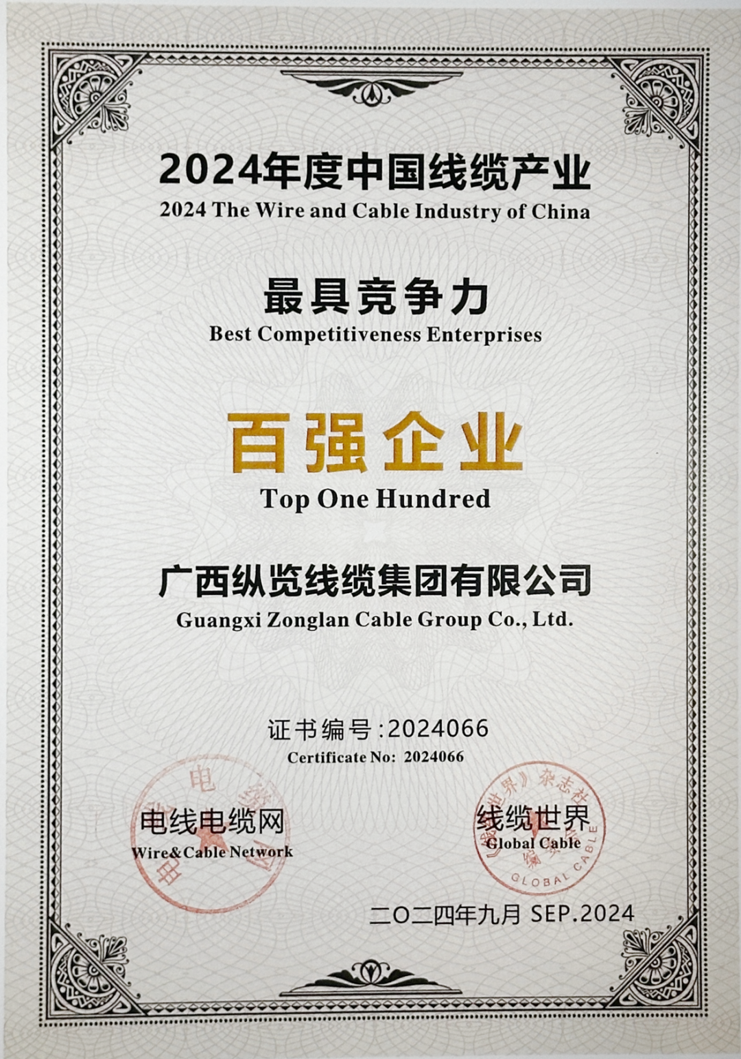 9月24日,“2024年度中國(guó)線纜產(chǎn)業(yè)最具競(jìng)爭(zhēng)力企業(yè)”授牌儀式在上海隆重舉行,活動(dòng)發(fā)布了“2024年度中國(guó)線纜產(chǎn)業(yè)最具競(jìng)爭(zhēng)力企業(yè)100強(qiáng)名單”。縱覽線纜集團(tuán)再次上榜,連續(xù)6年榮膺“中國(guó)線纜產(chǎn)業(yè)最具競(jìng)爭(zhēng)力企業(yè)100強(qiáng)”。 此次大會(huì)以“聚焦新質(zhì)生產(chǎn)力 賦能高質(zhì)量發(fā)展”為主題,分析線纜行業(yè)發(fā)展?fàn)顩r,發(fā)布年度國(guó)際國(guó)內(nèi)線纜標(biāo)準(zhǔn)化工作發(fā)展報(bào)告,以及企業(yè)競(jìng)爭(zhēng)力分析報(bào)告。線纜企業(yè)、檢驗(yàn)檢測(cè)機(jī)構(gòu)、咨詢機(jī)構(gòu)、科研院所及高校、材料企業(yè)和設(shè)備企業(yè)等行業(yè)同仁近500人參加大會(huì)。 連續(xù)多年上榜,是對(duì)公司在線纜行業(yè)深耕20余年匠心砥礪的肯定,更是社會(huì)各界和行業(yè)專(zhuān)家對(duì)企業(yè)綜合實(shí)力和發(fā)展?jié)摿Φ囊恢抡J(rèn)可。近年來(lái),集團(tuán)通過(guò)技術(shù)創(chuàng)新、質(zhì)量提升、服務(wù)優(yōu)化和精細(xì)化管理不斷提高經(jīng)營(yíng)水平。未來(lái),縱覽集團(tuán)將持續(xù)秉承“做好產(chǎn)品回報(bào)客戶,做好企業(yè)回報(bào)社會(huì)”的使命愿景,在“服務(wù)電網(wǎng),走進(jìn)萬(wàn)家”發(fā)展戰(zhàn)略引領(lǐng)下賡續(xù)前行,不斷優(yōu)化產(chǎn)品結(jié)構(gòu),提升產(chǎn)品質(zhì)量,同時(shí)積極拓展國(guó)內(nèi)外市場(chǎng),加速產(chǎn)業(yè)升級(jí),為助推中國(guó)線纜行業(yè)高質(zhì)量發(fā)展貢獻(xiàn)更大力量。 |
