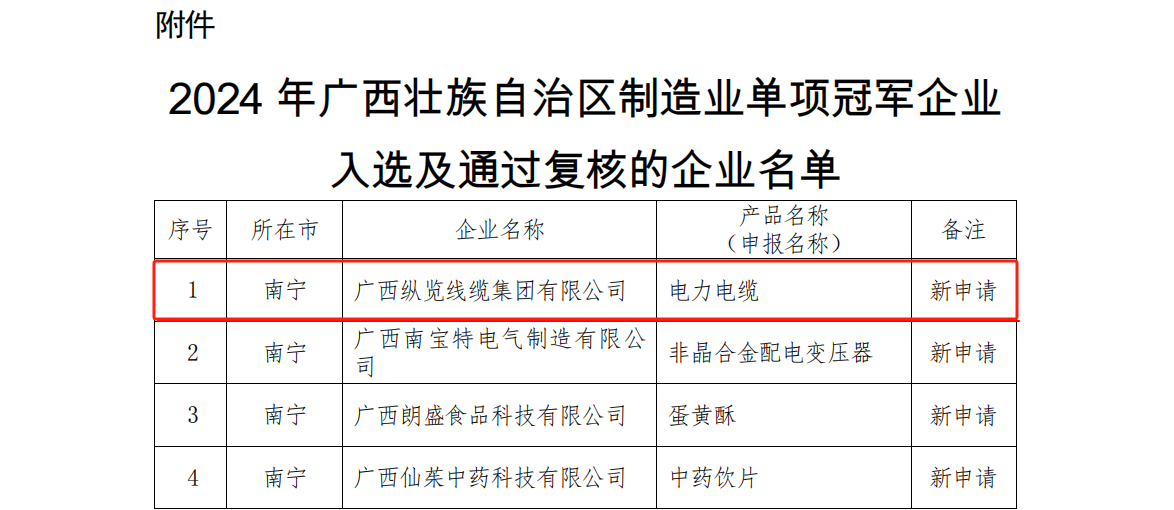 近日,自治區(qū)工業(yè)和信息化廳正式公示2024年自治區(qū)制造業(yè)單項(xiàng)冠軍企業(yè)名單,其中涉及多個(gè)當(dāng)下熱門的制造業(yè)創(chuàng)新領(lǐng)域,經(jīng)過遴選和復(fù)核評(píng)價(jià)工作,廣西縱覽線纜集團(tuán)有限公司憑借卓越的綜合企業(yè)實(shí)力,被授予2024年【廣西壯族自治區(qū)制造業(yè)單項(xiàng)冠軍企業(yè)】稱號(hào)! 據(jù)悉,自治區(qū)制造業(yè)單項(xiàng)冠軍的評(píng)選,目的在于激勵(lì)和表彰在制造業(yè)領(lǐng)域具有顯著技術(shù)創(chuàng)新能力和市場(chǎng)競(jìng)爭(zhēng)力的企業(yè)。評(píng)選過程中,專家組對(duì)參評(píng)企業(yè)的技術(shù)實(shí)力、產(chǎn)品創(chuàng)新能力、市場(chǎng)表現(xiàn)等多個(gè)維度進(jìn)行全面評(píng)估,最終評(píng)選出了包括廣西縱覽線纜集團(tuán)有限公司在內(nèi)的33家企業(yè)為單項(xiàng)冠軍企業(yè)。 此次獲得單項(xiàng)冠軍的榮譽(yù),對(duì)縱覽線纜集團(tuán)而言,既是對(duì)其過往努力的肯定,亦是對(duì)其未來發(fā)展的激勵(lì)。展望未來,集團(tuán)將致力于發(fā)揮制造業(yè)單項(xiàng)冠軍企業(yè)的示范與引領(lǐng)作用,持續(xù)秉承以“做好產(chǎn)品回報(bào)客戶,做好企業(yè)回報(bào)社會(huì)”的企業(yè)使命,堅(jiān)持以技術(shù)創(chuàng)新為核心,不懈努力提升產(chǎn)品質(zhì)量與服務(wù)水平,致力于為用戶提供更加優(yōu)質(zhì)、高效的電線電纜產(chǎn)品和服務(wù)。此外,公司亦將積極投身于行業(yè)內(nèi)的交流與合作,為推動(dòng)行業(yè)高質(zhì)量發(fā)展蓄勢(shì)賦能。 |
